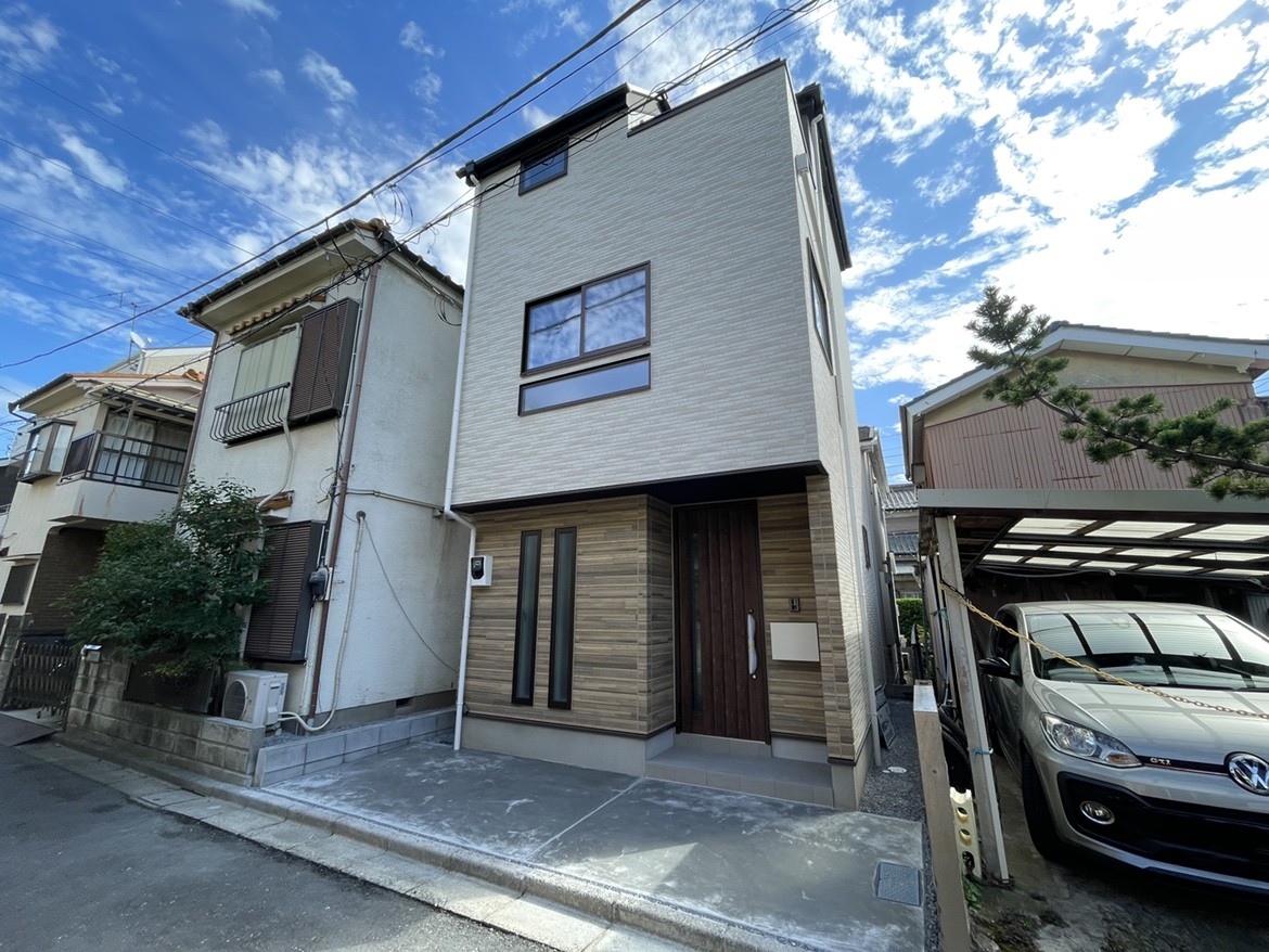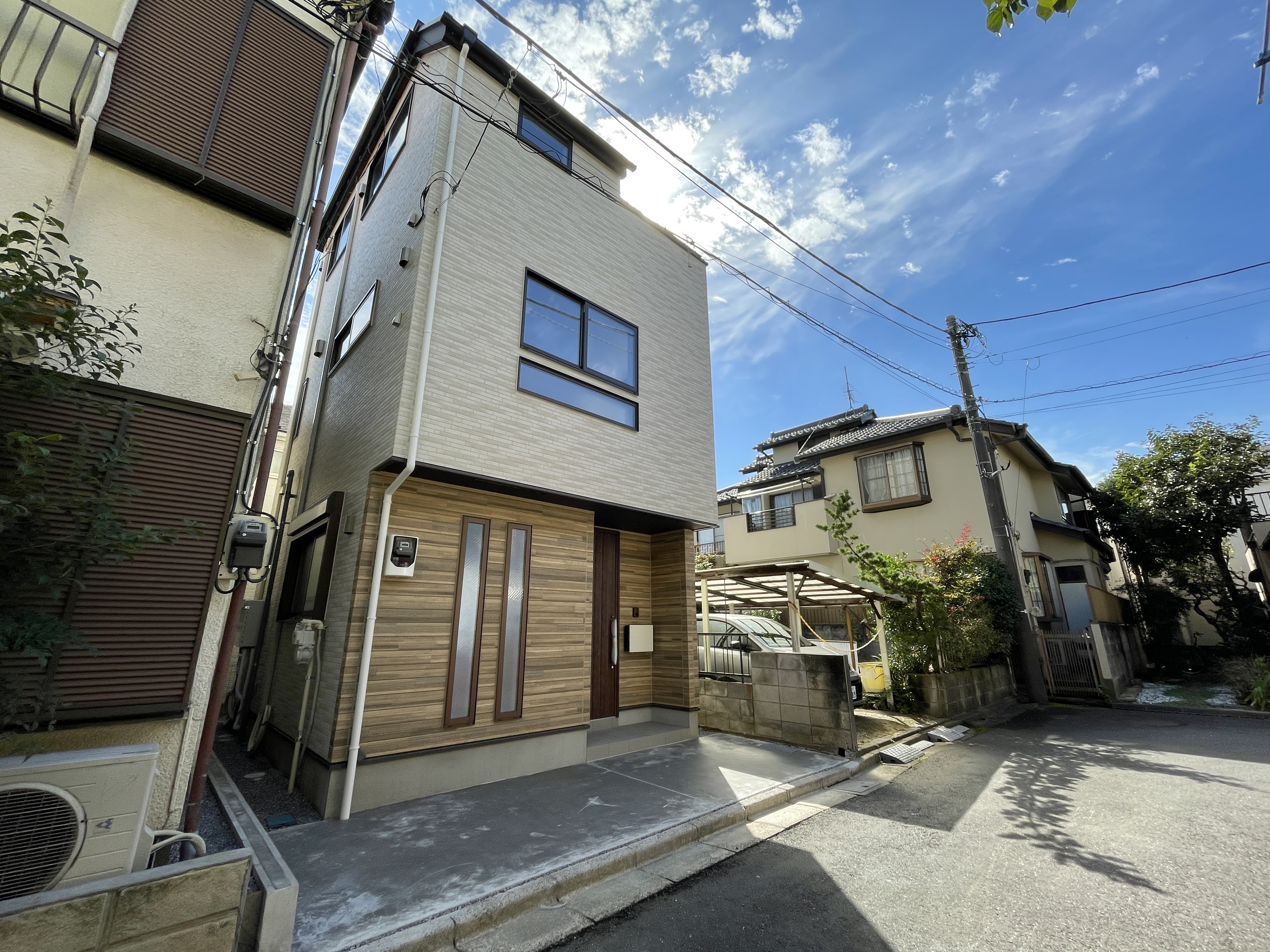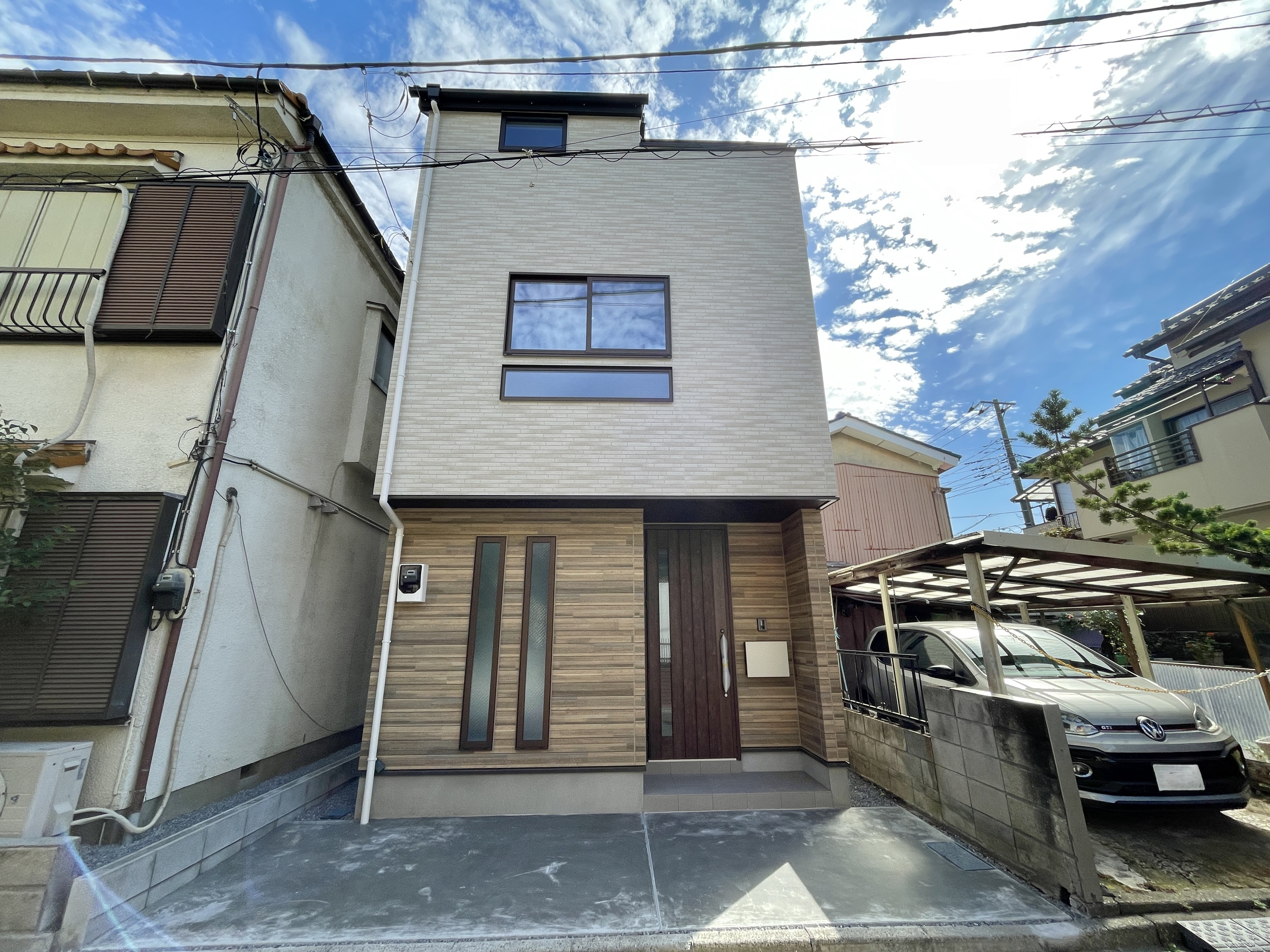 内装の雰囲気に合わせ、外壁にはぬくもり感じる木目素材を採用。