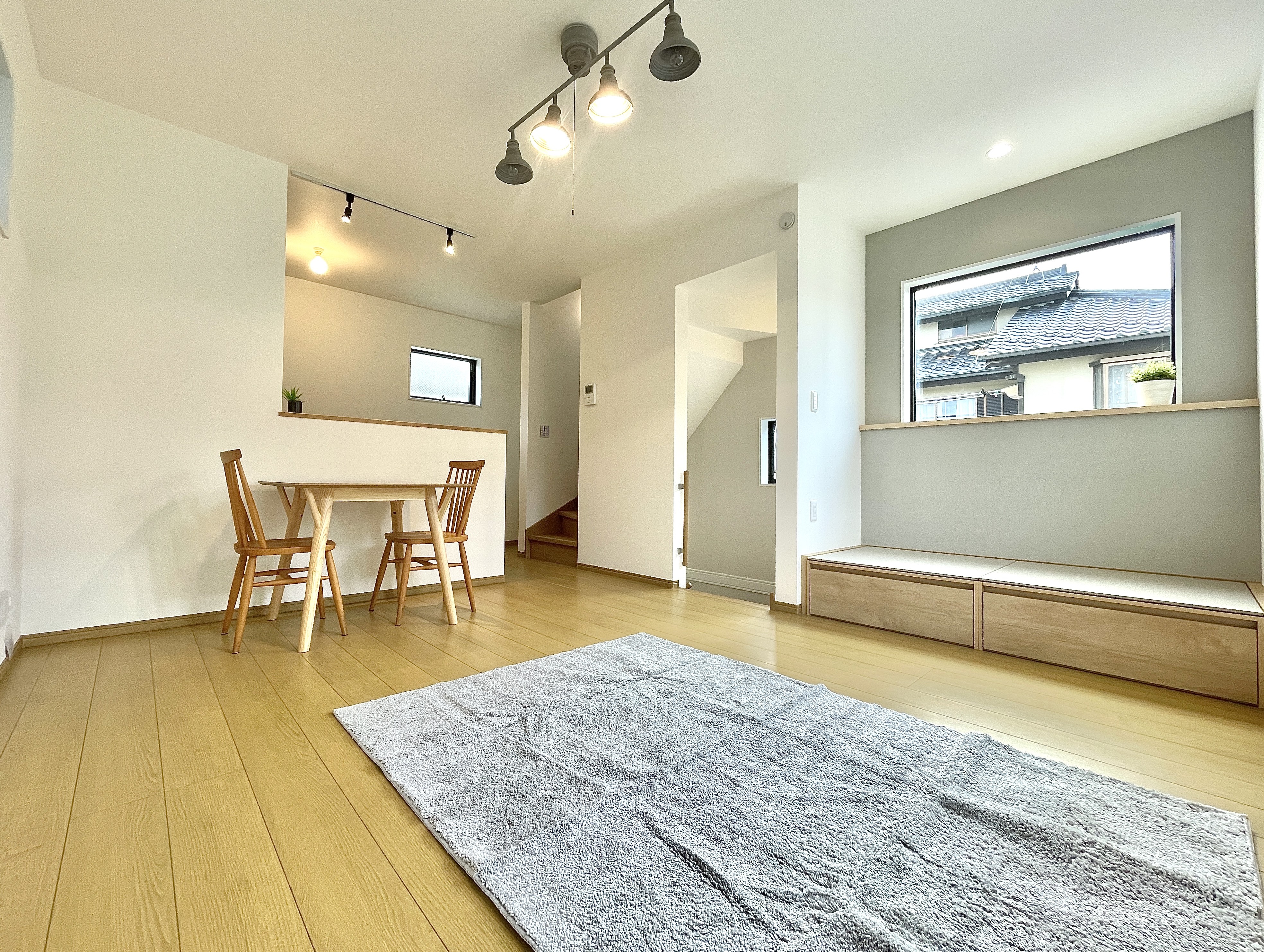 開放感あふれる大きめのFIX窓・足元には収納もたっぷり備え、見た目も使い勝手も両立した心地よい空間に仕上げました ♪