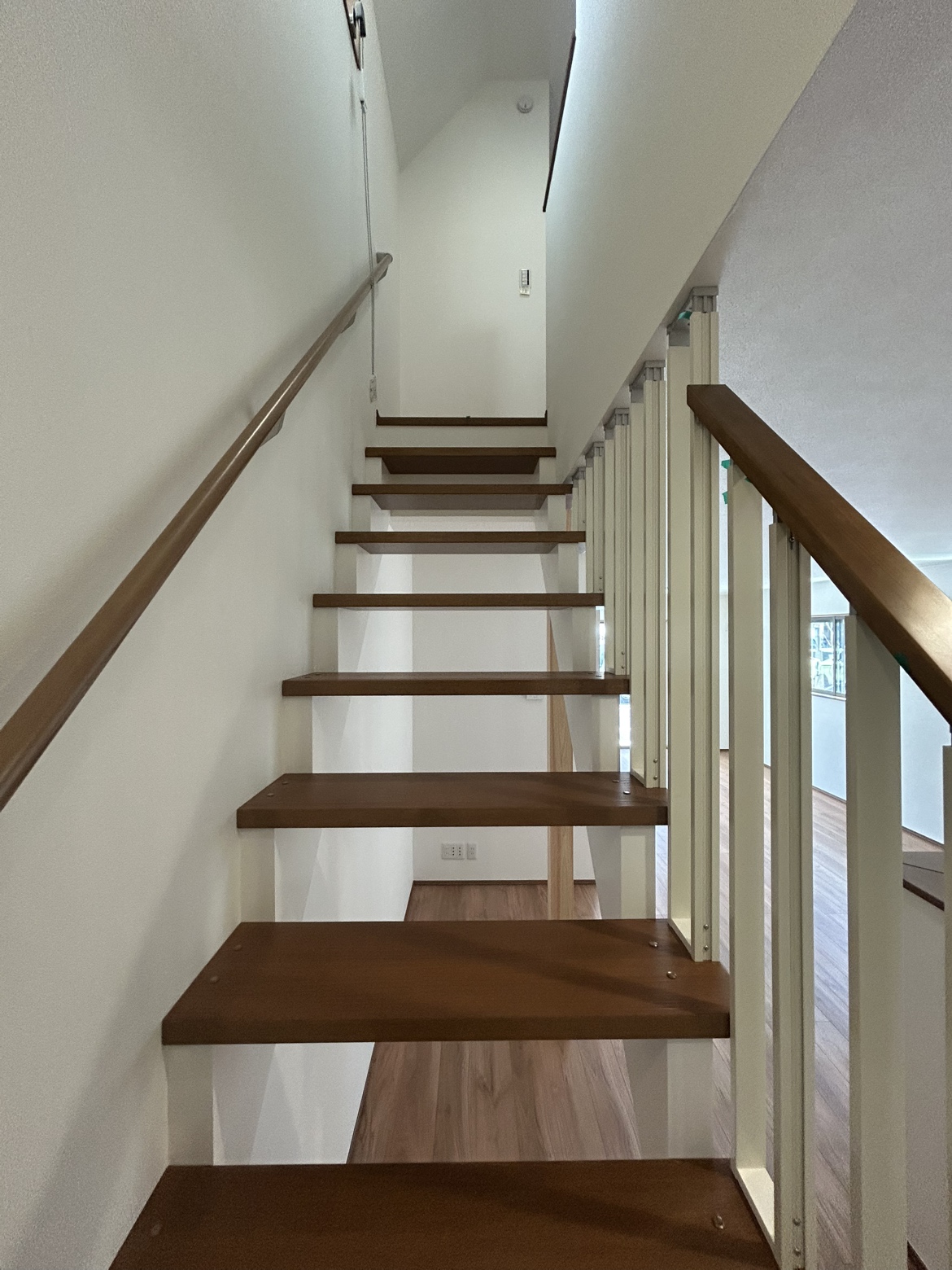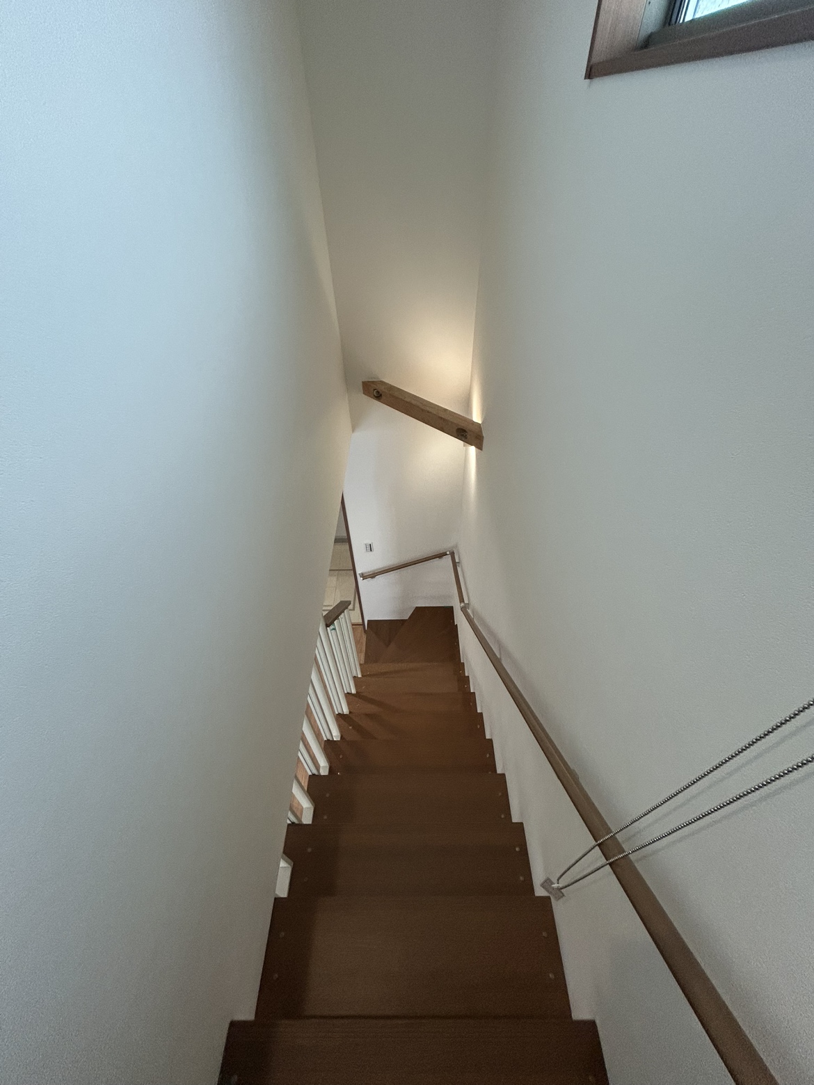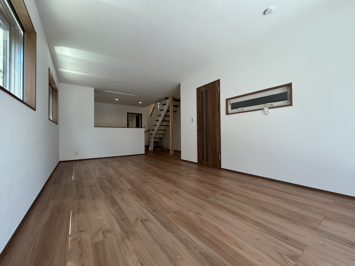 室内はデザイン階段採用し、リビングにはインプラス窓、木のぬくもりある火打梁、柱を使用。